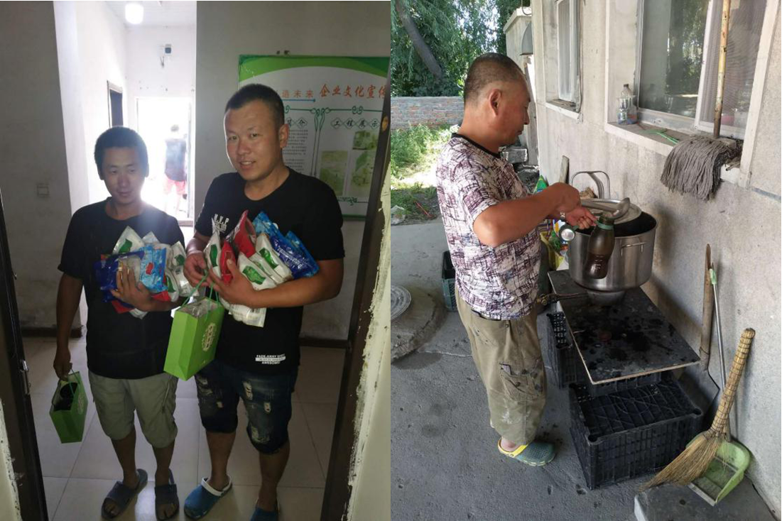7月31日,商混公司為員工們發放解暑物品,并在院內支起爐灶,天天給大家煮綠豆水。