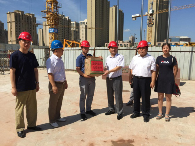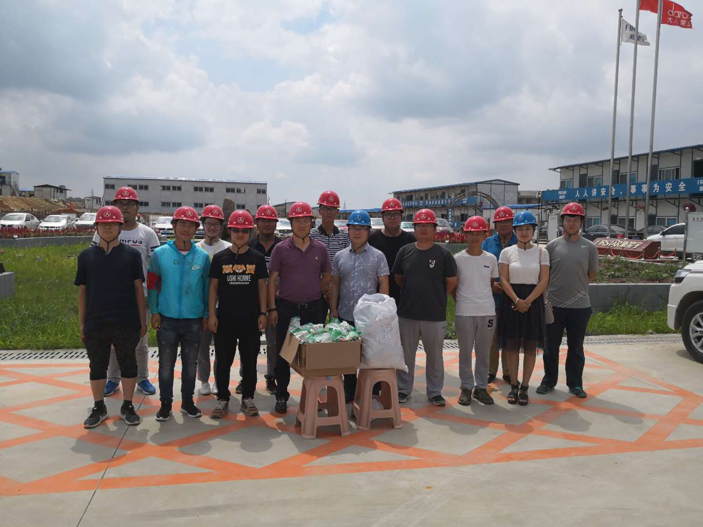 兩組慰問團分別對北湖吾悅廣場、和韻四期、新星宇之悅、幸福美郡、萬科金域、凈月上城四、五期、凈月上城A區三期、南熙府 、新星宇廣場、之洲上鄰6號樓等10個項目現場,把清涼和關懷送到高溫作業的一線員工手中。