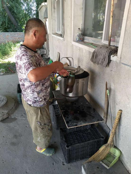 7月31日,商混公司為員工們發放解暑物品,并在院內支起爐灶,天天給大家煮綠豆水。